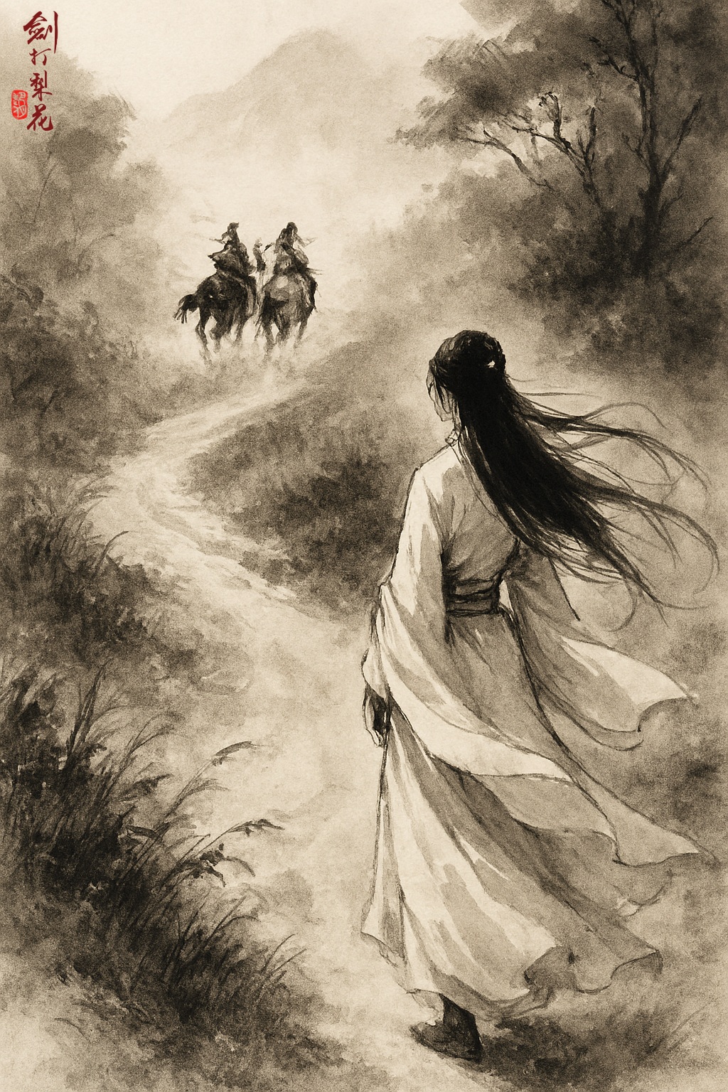 這一天走到邱州郊外,正談笑間,突然一道白影,從兩騎之間呼嘯而過,快如鬼魅,兩人一驚,待要看清,白影卻已消失無踪。鐵無咎驚道:「難道是白姑娘?」當天離開寶蘭寺時,眾人曾呼喚白無瑕,但她卻始終沒有再現身。