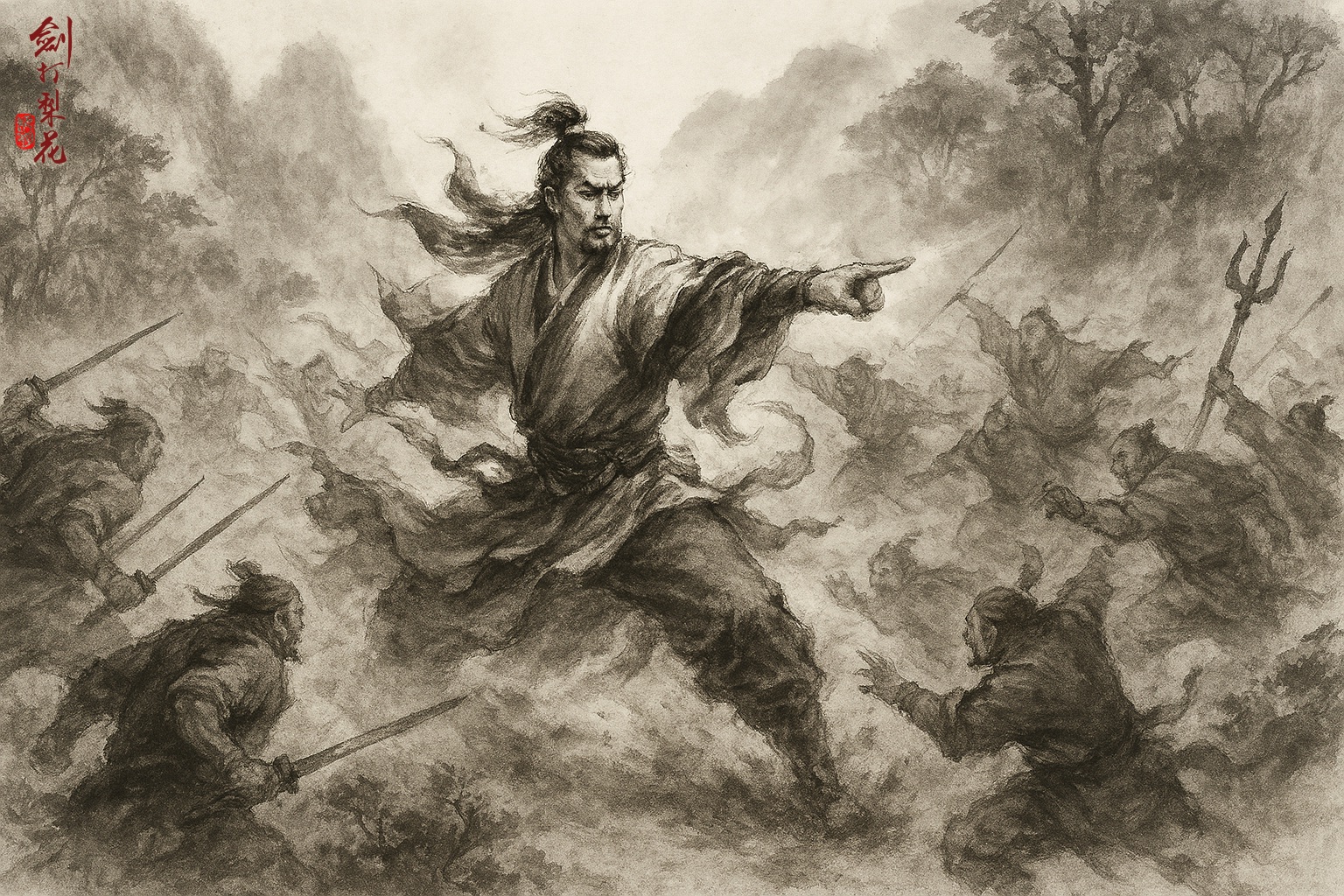 吳二公子二話不說,乘機連發三劍,劍劍要命,直指湖北三鷹。這湖北三鷹不比之前金龍天符的小嘍囉,三人聯手多年,默契十足,這時奮力抵禦,吳二公子一陣自忖,便喝道:「二十招之內,爾等必敗!」臨陣計招,是他一貫作風。