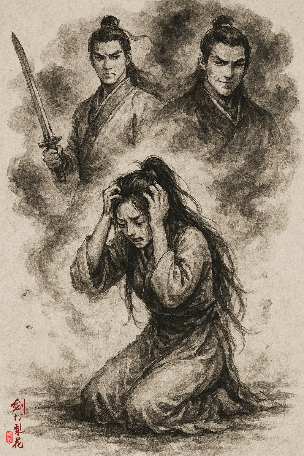 想到這裡,她突然狠狠地打了自己一巴掌。劇痛之下,她終於忍不住哭了出來。她不明白為何自己還要想方設法為梁人鳳辯解,她多麼希望七姐此刻會出現,像姐姐像娘親一樣地,把自己痛罵一頓。這個男人所說過的甜言蜜語全都是蛇蠍劇毒,他的山盟海誓全都是虛假不實,他無故拋妻棄子便是明證,難為自己還曾經為了他,幾乎把兒子的性命也搭上。為了自己為了孩子,決也不能再相信此人了。