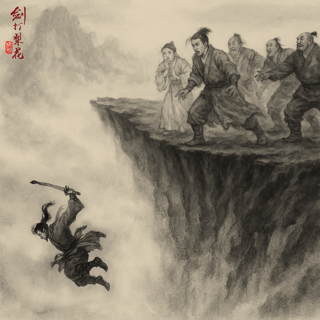 梁上君笑道:「不不不,我若是落在外處,一跑,你便追了上來。我輕功雖好,內力不如你,遲早被你追上。不不不,我落在此處,正是個絕妙的所在!」說罷忽然一躍,竟往深崖中跳了下去!