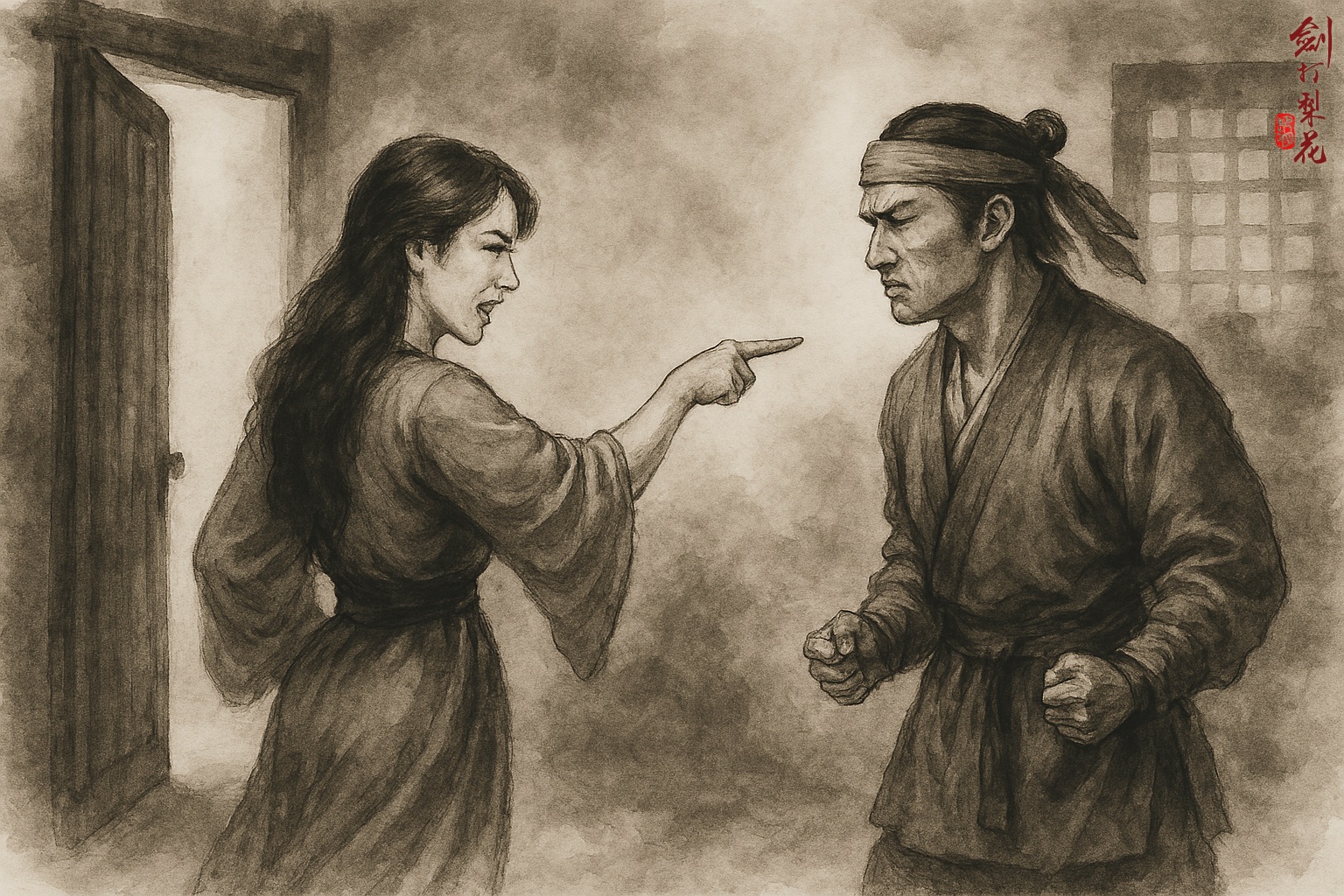 屋內景物依舊,但氣氛卻有點異樣。李瑤一改常態,衣著非常整齊,臉上也沒有笑容。她坐在桌前,把玩著手上的一塊玉佩,聽見馬成黥進來,她甚至連眼珠也沒抬一下。
