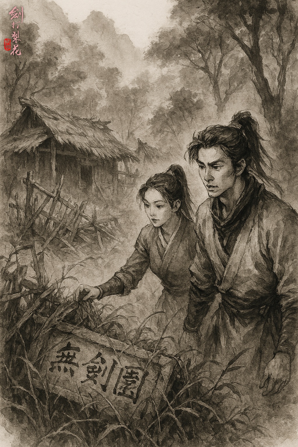 當下鐵無咎搬起匾額,回到方才避雨之處,細細清洗乾淨,顧九月則找了些乾柴,生起了火堆取暖,又四處摘了些野果回來充飢。她見鐵無咎對待匾額如伺奉廟裡佛像般虔誠,忍不住問道:「我只聽說過吳二公子劍法絕世,那他後來卻又是為何銷聲匿跡了呢?」