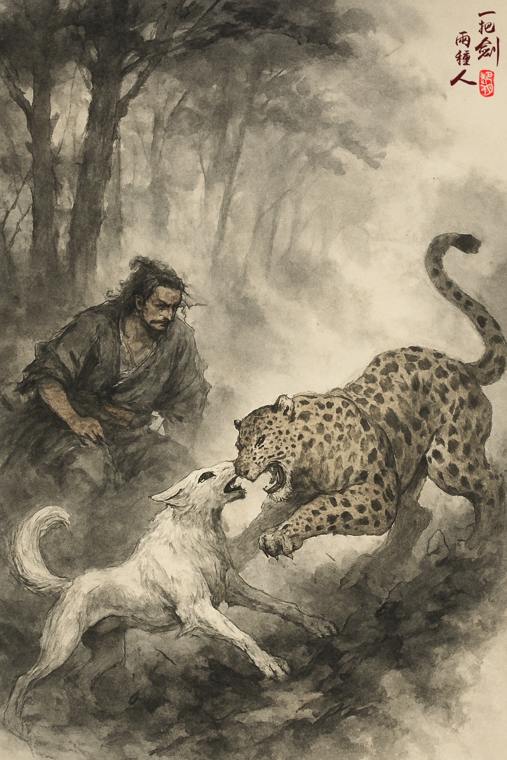 不知不覺,司徒不凡在此一住,便過去四五個月。這一天兩人一狗如常狩獵,不料楊百步卻一時不慎,竟驚動了一條花豹。花豹大怒反撲,楊百步受傷,一時動彈不得,阿壯誓死護主,與花豹搏鬥。司徒不凡聞聲趕來,見狀大急,不得已一衝上前,趁花豹專注與阿壯纏鬥,使出修練了多時的「雲夢迷蹤掌」,一掌偷襲,正中花豹小腹。花豹吃痛,反爪一掃,司徒不凡身法靈敏,輕鬆躲過,但心中也不禁暗暗吃驚。方才一掌,已使出全力,尋常人多半要當場斃命,沒料到這花豹還有反擊之力。正暗暗叫苦,那花豹似也已知道厲害,不再進攻,一步步後退,突然一躍,竄入林中消失不見。